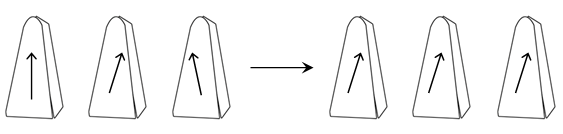 準備數個節拍器,並且在不同時間調動節拍器的擺針,剛開始擺針的方向會左右不同,但是過了一段時間,所有節拍器的擺針都會漸漸一致擺左擺右。